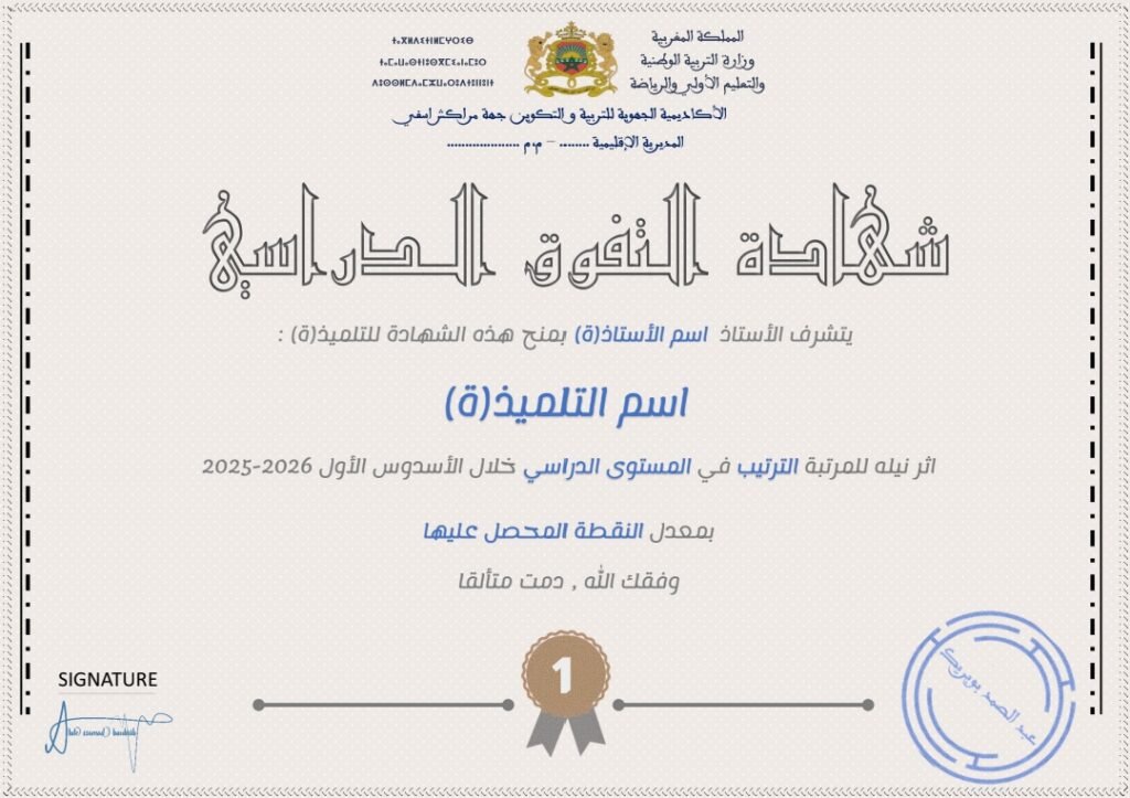 شواهد للتلاميذ الرئيسيةمستجدات و مقالات تربويةشواهد للتلاميذ يحتوي هذا المقال على نماذج لشواهد التفوق الدراسي و شواهد تقديرية للتلاميذ يمكنك تحميلها بصيغة Word او pdf و التعديل عليها لتلائم احتياجاتك الخاصة. WordPDFتنزيلتنزيل WordPDFتنزيلتنزيل